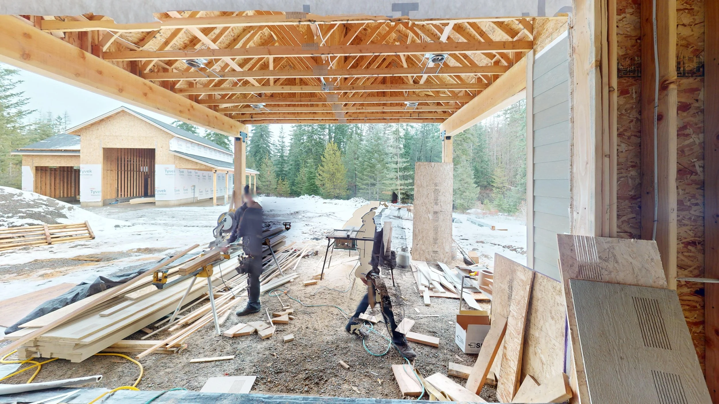 For our first custom produced “As Built” survey, we followed Alpine Custom Carpentry’s framing crew as they built a new home near Hayden Lake. We produced a Matterport tour of the framed structure, and aerial video and stills at the beginning and end of framing. Then we produced a Matterport® 3D virtual tour prior to wall cover, creating a fully explorable 3D model of the home as-built.
